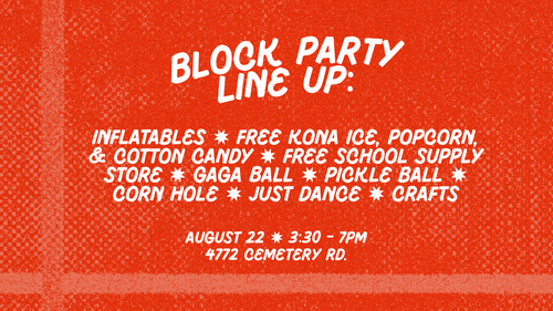 Join us for a Block Party to celebrate the end of summer and the start of a new school year!